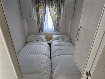 A beautiful 8 Berth Caravan with Veranda located by the sea wall. Fully equipped with everything you need for a self-catering holiday. Gas Central Heating, Double Glazing. 3 bedrooms, 2 x twin bedded rooms and 1 double room. Also has a sofa bed in the lounge.